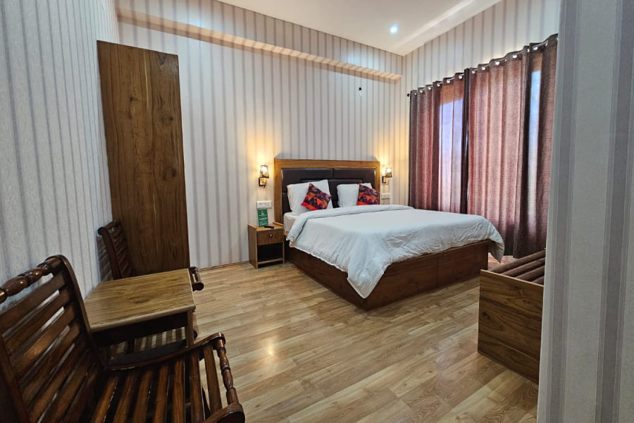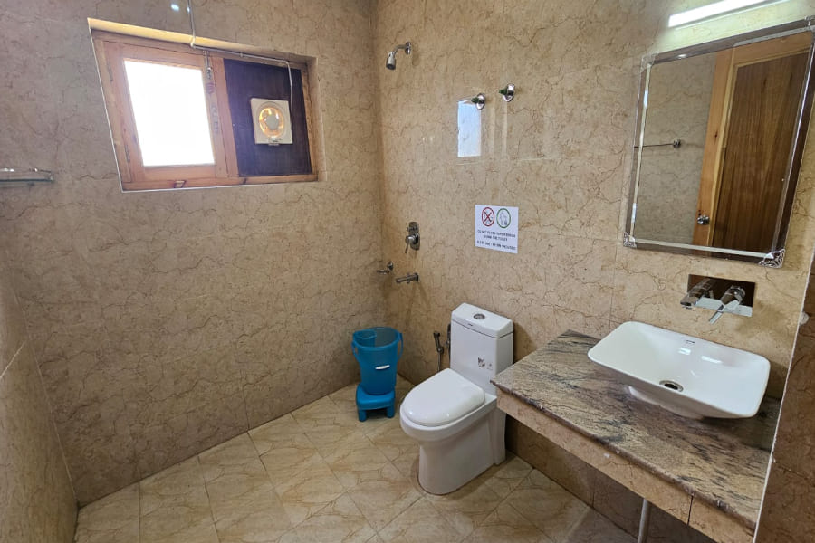 Rooms here is having a private balcony where you can sit,relax and enjoy the stunning view of snow clad Stok Kangri peak,Namgyal Tsemo,Leh Palace and Shanti Stupa as well;Rooms are equipped with LED TV with satellite channels,a digital safe in your wardrobe,intercom. Attached with a private bathroom having complimentary toiletries.